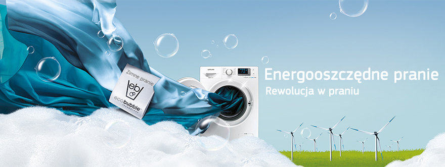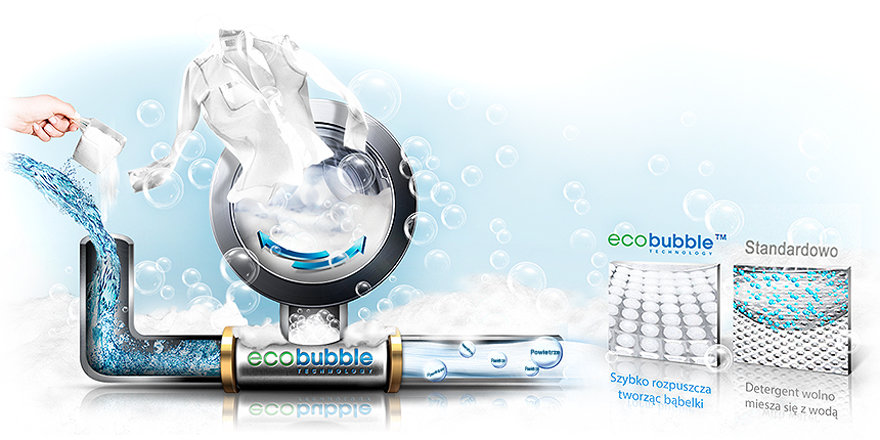 Rewolucyjna technologia Samsung Eco Bubble™ przed rozpoczęciem cyklu tworzy pianę z detergentu, powietrza i wody, produkując bąbelki czyszczące, które wnikają do tkaniny szybciej niż detergent o wysokim stężeniu. Dzięki temu możesz prać ubrania w zimnej wodzie z tą samą skutecznością co w ciepłej, zmniejszając pobór energii.