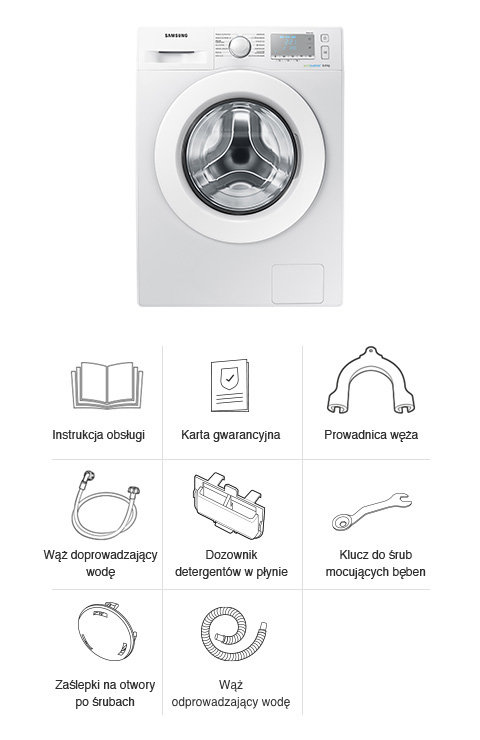 ![]() ![]() wybrane cechyEco BubbleRewolucyjna technologia aktywnej piany, która powstaje w wyniku połączenia detergentu, wody i powietrza. Szuflada Stay CleanSpecjalnie zaprojektowany system wypłukania całego detergentu z szuflady gwarantuje jej nieskazitelną czystość. Bęben DiamondOpływowy kształt bębna Diamond oraz specjalnie wyprofilowane otwory gwarantują skuteczność każdego prania. Wydajność energetyczna A+++Oszczędzaj i dbaj o środowisko z pralką o najwyższej efektywności energetycznej A+++. Ekoczyszczenie bębnaFunkcja stosuje gorącą wodę, by pomóc Ci zachować odpowiednią higienę i czystość wewnątrz pralki. Ładowność 8 kgZmniejsz ilość prań. Pojemny bęben pralki Samsung pomieści nawet 8 kg ubrań lub innych tkanin. Smart CheckTo system wykrywania i diagnostyki problemów, z podpowiedziami łatwych rozwiązań. Grzałka ceramicznaPodwójna powłoka ceramiczna chroni grzałkę przed osadzającym się na niej kamieniem. Blokada rodzicielskaFunkcja uniemożliwia przypadkową zmianę ustawień i programów podczas pracy pralki. Wejdź do świata Eco Bubble![]() ![]() ![]() Eco Bubble™. Chroń tkaniny, oszczędzaj energięEco Bubble™* to rewolucyjna technologia, która jeszcze przed rozpoczęciem prania, łączy detergent z wodą i powietrzem tworząc pianę Eco Bubble™*. Aktywne bąbelki wnikają w strukturę tkanin głębiej i nawet o 40 razy szybciej, by każde Twoje pranie było maksymalnie efektywne. *Dowiedz się więcej na www.ecobubble.samsung.pl ![]() ![]() Doskonałe efekty. Pranie w niskiej temperaturzeDokładne pranie nawet w niskiej temperaturze. Tyle wystarczy, by skutecznie usunąć najtrudniejsze zabrudzenia i plamy po kakao, winie, trawie czy makijażu. ![]() ![]() Funkcja Aktywna Piana. Sposób na nawet trudne zabrudzeniaSpecjalna funkcja Aktywnej Piany pomaga pozbyć się nawet najtrudniejszych plam na Twoich ubraniach. Przed rozpoczęciem wybranego programu prania, możesz włączyć dodatkowy cykl. Pralka uruchamia specjalny tryb, który zmiękcza intensywne zabrudzenia (cykl namaczania przed praniem), by stały się łatwiejsze do usunięcia. Bąbelki aktywnie wnikają we włókna tkanin i rozpuszczają nawet zaschnięty na nich brud. Wystarczy jedno kliknięcie, by pozbyć się uporczywych zabrudzeń. ![]() ![]() Energooszczędność ![]() ![]() W trosce o zdrowie ![]() ![]() Ochrona tkanin ![]() ![]() Pranie w niskiej temperaturze ![]() ![]() technologie - przyjemność użytkowania![]() ![]() Szuflada Stay Clean. Czyści się samaW standardowych pralkach, bardzo często można spotkać problem pozostałości po detergentach w podajnikach, które wraz z upływem czasu trudno usunąć. Prócz nieestetycznego wyglądu, mogą być również siedliskiem różnego rodzaju bakterii oraz pleśni. Pralka Samsung posiada szufladę Stay Clean, w której specjalnie zaprojektowany system gwarantuje staranne wypłukanie całego detergentu. Szuflada pozostaje czysta, a korzystanie z urządzenia jest jeszcze bardziej higieniczne. W trosce o Twoje dziecko - program prania "Dziecięce"Program prania ubranek "Dziecięce" korzysta z wysokiej temperatury oraz specjalnego trybu dodatkowego płukania. Ubrania są nie tylko idealnie czyste po każdym praniu, ale także dokładnie wypłukane z pozostałości detergentu. Opcja szybkiego praniaDzięki trybowi Quick Wash, nawet napięty plan dnia nie przeszkodzi Ci w zrobieniu prania. Wystarczy jedno kliknięcie, by w 15 minut odświeżyć lekko zabrudzone ubrania, których potrzebujesz. nowoczesny design i wygoda![]() ![]() ![]() ![]() Crystal Gloss™. Doskonała linia, elegancki wyglądDopracowana w każdym calu linia Crystal Gloss™ sprawia, że pralka staje się ozdobą każdego nowoczesnego wnętrza. Zaokrąglony przedni panel uzupełnia szeroki ekran z płaskimi przyciskami. Przyciski reagują nawet na bardzo delikatny dotyk. Drzwi wykonane zgodnie z technologią Samsung Touch of Color™ posiadają przezroczystą obwódkę, która niezwykle designersko prezentuje się w towarzystwie pozostałych elementów urządzenia. Elegancki wygląd i maksymalna funkcjonalność*. *Specyfikacje mogą różnić się w zależności od modelu. ![]() ![]() 14 programów prania. Intuicyjne sterowanie dla Twojej wygodyPralka posiada 14 programów prania oraz tryby dodatkowe, dzięki którym możesz ustawić idealne warunki dla dowolnego załadunku – także bardzo delikatnych tkanin lub mocno zabrudzonych ubrań. Intuicyjny panel sterowania pozwala wybrać gotowe parametry lub ręcznie dopasować ustawienia zgodnie z Twoimi preferencjami. ![]() ![]() Wygodne rozwiązanie. Ustaw czas zakończenia praniaZakończenie cyklu prania możesz opóźnić od 3 do 19 godzin (w godzinnych odstępach) w zależności od Twoich potrzeb. W ten sposób unikniesz pozostawienia wilgotnych ubrań w pralce, gdy nie masz możliwości wyciągnięcia prania tuż po jego zakończeniu. Maksymalna prędkość wirowania 1200 (obr/min)![]() ![]() Maksymalna prędkość wirowania w pralce Samsung to aż 1200 obr/min, dzięki czemu pralka skutecznie usuwa wilgoć z pranych tkanin, a pranie schnie znacznie szybciej. Łatwe prasowanie i zero zagnieceń![]() ![]() W przypadku tkanin delikatnych i wrażliwych na zagniecenia, możesz włączyć funkcję Łatwe Prasowanie. bezpieczna pralka na lata![]() ![]() ![]() ![]() Kontrola napięcia. Bezpieczeństwo wpływające na trwałość pralkiPodczas nagłych skoków napięcia czy przerw w dostawie prądu, zwiększa się możliwość uszkodzenia pralki. System Volt Control zapewnia stałą kontrolę napięcia podczas cyklu prania. Twoja pralka działa bezpiecznie nawet przy wahaniach napięcia ± 25%. Gdy dojdzie już do przerwy w dostawie prądu, system automatycznie uruchomi pralkę i pranie będzie kontynuowane. rysunek techniczny![]() ![]()
