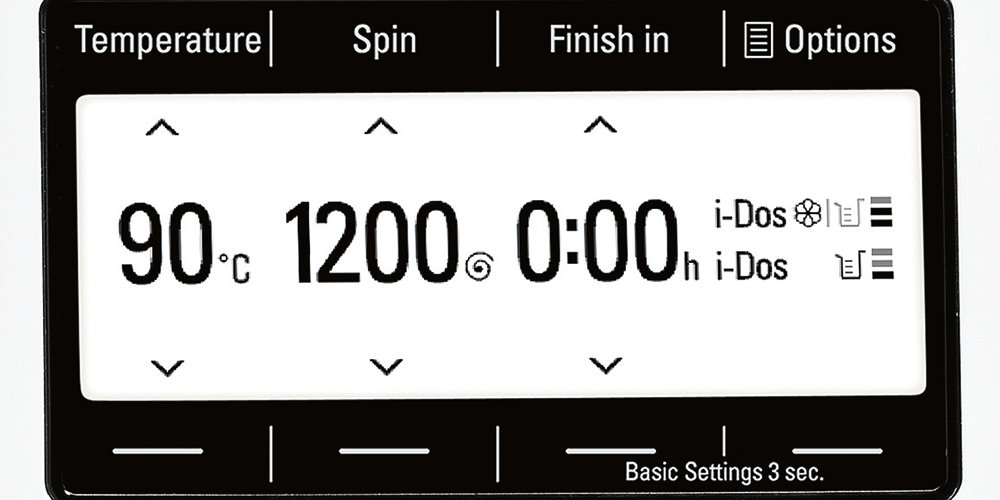 Pralki z tej serii zostały wyposażone w szeroki i wygodny wyświetlacz TFT wysokiej rozdzielczości, którego zaawansowana technologia sprawdziła się już w nowoczesnych telefonach komórkowych. Wyraźny kontrast informacji do tła daje komfort odczytywania komunikatów nawet gdy jest ciemno. Wyświetlacz zapewnia również maksymalną wygodę i elastyczność w czasie prania, podając wszystkie istotne informacje o użytym programie — np. temperaturę i prędkość — a także udostępniając dodatkowe funkcje takie jak: opóźnienie czasu zakończenia cyklu, zmiana ustawienia temperatury, obrotów i wielu innych parametrów prania.
