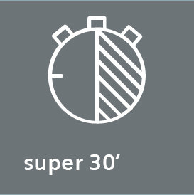 Super 30 to półgodzinny program do prania lekko zabrudzonej bawełny lub innych, niewymagających tekstyliów o załadunku do 3,5 kg. Dzięki rozwiniętej fazie nawilżania na początku cyklu i przedłużonemu działaniu detergentu podczas prania głównego, program świetnie poradzi sobie z praniem sporej ilości krótko noszonej odzieży, jak T-shirty, piżamy czy bluzy.