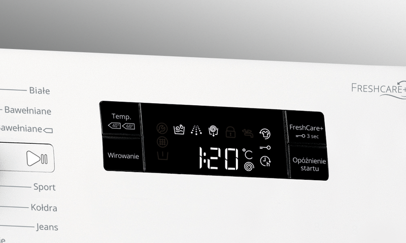 FreshCare+ to totalna wygoda w robieniu prania. Dzięki rewolucyjnemu rozwiązaniu już nie musisz wyjmować prania zaraz po skończonym cyklu. System FreshCare+ sprawi, że ubrania będą świeże i pachnące nawet 6h po zakończeniu cyklu prania.