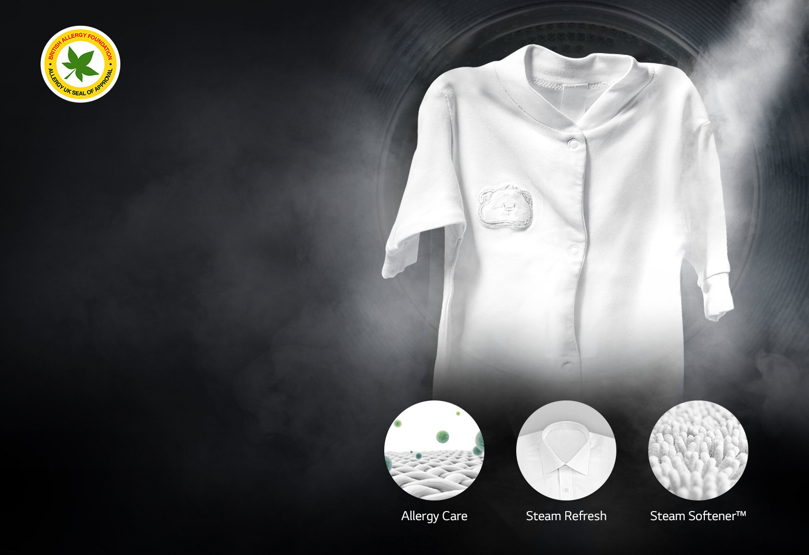 ELIMINACJA 99,9% ALERGENÓW dzięki technologii True Steam™ Technologia True Steam™ typu „trzy w jednym”: Funkcja Allergy Care usuwa alergeny z ubrań poprzez optymalną kontrolę temperatury. Funkcja Steam Refresh odświeża ubrania w zaledwie 20 minut — mniej zagnieceń i zapachów bez prasowania. Steam Softener™ — najbardziej higieniczny zmiękczacz wody — zapewnia stosowanie wyłącznie czystej wody True Steam™. Idealny do prania ubranek dziecięcych i ubrań osób o wrażliwej skórze. |