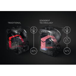 Bezpieczne, niskie temperatury Technologia AEG SensiDry umożliwia suszenie tkanin przy o połowę niższej temperaturze niż w konwencjonalnych suszarkach – bez wydłużania czasu suszenia. W ten sposób nigdy nie są one poddawane nadmiernemu działaniu ciepła. |