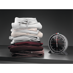 Krótsze cykle suszenia, lepsza pielęgnacja tkanin Dzięki ulepszonemu przepływowi powietrza suszarki AEG suszą ubrania szybciej i bardziej efektywnie niż tradycyjne suszarki. Ubrania są bardziej zadbane, przy krótszych cyklach suszenia. |