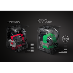 Łatwy w obsłudze filtr, który zwiększa wydajność Wysokowydajny system filtrujący ÖKOFlow zatrzymuje nawet najmniejsze cząsteczki zanieczyszczeń i jest łatwy do czyszczenia. Bez problemu utrzymasz duży przepływ powietrza i niskie zużycie energii. |