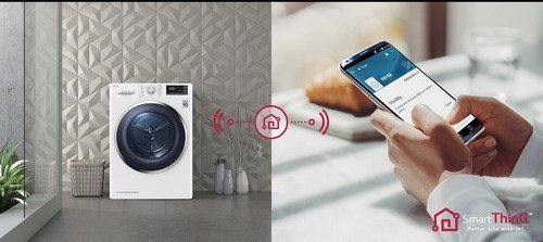 | Inteligentna wygoda dzięki technologii SmartThinQ™ Twoja suszarka jest już wystarczająco inteligentna, aby można ją było obsługiwać zdalnie i pobierać dodatkowe programy. Łącze Wi-Fi zapewnia łatwą obsługę i dostęp do najnowocześniejszych innowacji. |