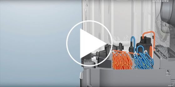 * Testowana zgodnie z normą IEC 61121: 2013 / 8kg pojemnik do prania / taśma bawełniana z Heatpump (DV80M5013KW) oraz bez Heatpump (DV80H4100CW). Poszczególne wyniki mogą się różnić.