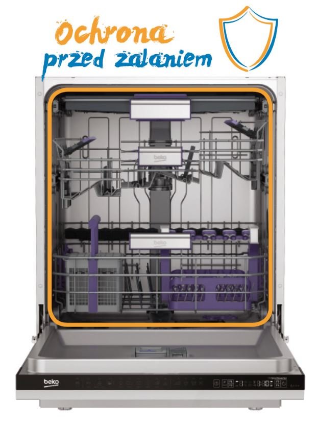| System WaterSafe | Skuteczna ochrona przed zalaniem System Water Safe to ochrona przez wypływem wody i zalaniem pomieszczania. W razie wycieku wody, dopływ wody do zmywarki odcinany jest automatycznie. |