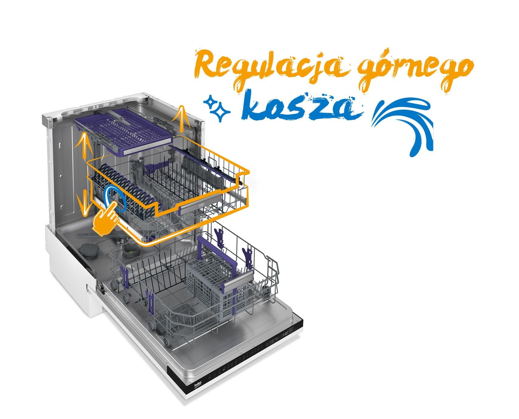 | System Acrobat | Dostosuj wnętrze zmywarki jak chcesz i kiedy chcesz Funkcja regulacji górnego kosza zmywarki, nawet wtedy, kiedy kosz jest pełen! W każdej chwili możesz dostosować wnętrze zmywarki do aktualnych potrzeb. System Acrobat pozwala załadować większe naczynia nawet w ostatniej chwili, gdy reszta zmywarki już jest wypełniona. |