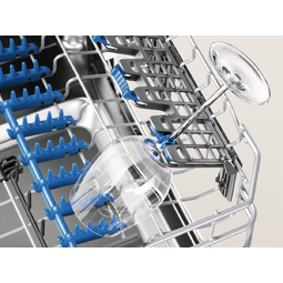 Wsporniki SoftGrip zapewniające stabilność i ochronę kieliszków do wina Delikatne kieliszki do wina wymagają podczas zmywania specjalnej ochrony. Dlatego ta zmywarka jest wyposażona w specjalne uchwyty SoftGrip, które delikatnie i pewnie przytrzymują trzonki kieliszków, aby nie przemieszczały się podczas zmywania. |