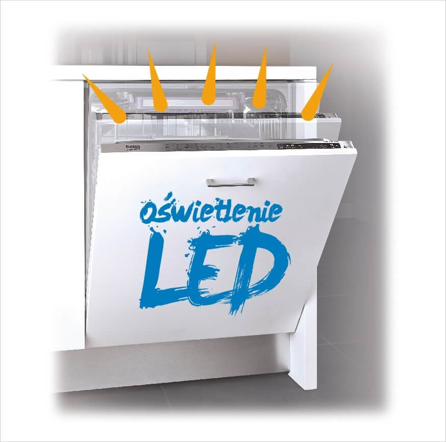| Oświetlenie wnętrza | Wygodnie użytkuj zmywarkę, nawet późnym wieczorem Kiedy używamy zmywarki – zwłaszcza wieczorem - często przeszkadza nam brak światła, przez co mało wygodnie jest w odpowiednim miejscu ułożyć naczynia i załadować zmywarkę. System oświetlenia wnętrza urządzenia da nam w tym przypadku większą wygodę użytkowania urządzenia. |  |