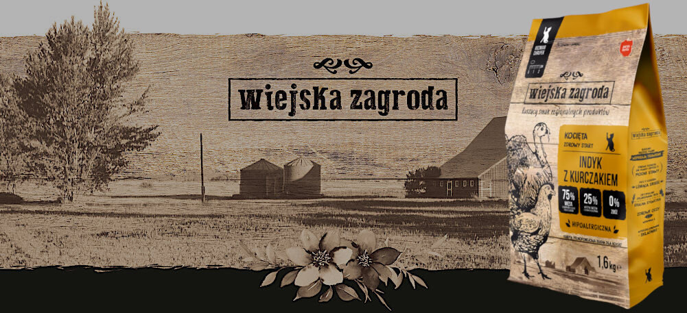 Karma dla kota WIEJSKA ZAGRODA Indyk z kurczakiem 2 x 1.6 kg