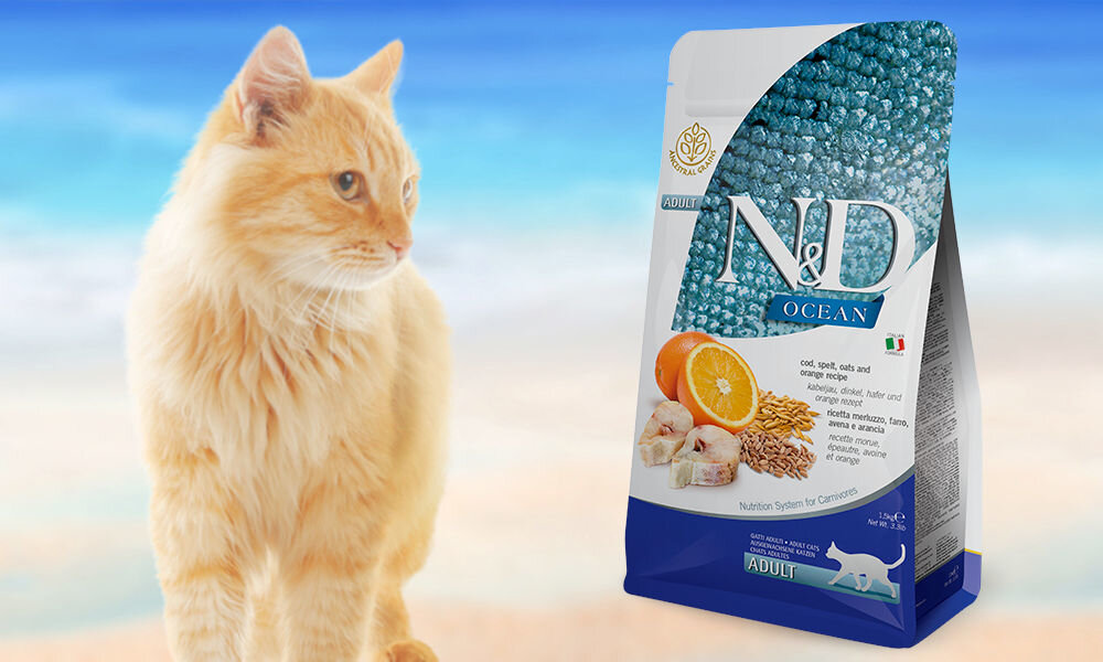 Karma dla kota FARMINA N&D Ocean Dorsz z orkiszem. z owsem i pomarańczą Adult 4 x 5 kg