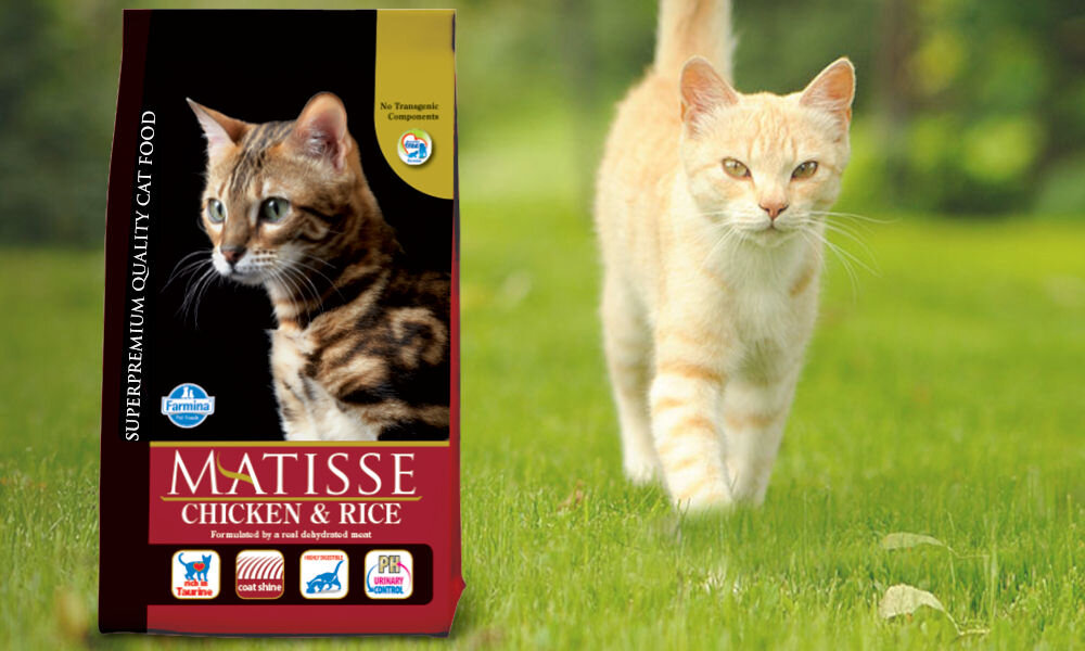 FARMINA Matisse to pełnoporcjowa karma dla kotów dorosłych. Ponieważ do jej produkcji używane są jedynie naturalne składniki, wygląd zewnętrzny karmy, czyli jej zapach, wilgotność i kolor krokietów, może się różnić pomiędzy partiami. Wynika to stąd, że ten sam rodzaj mięsa może mieć różne odcienie, co przekłada się na kolor karmy. W karmach marki FARMINA nie są stosowane żadne sztuczne barwniki, żeby ujednolić wszystkie partie karmy, a występowanie różnych kolorów nie wpływa na jakość karmy i jest zjawiskiem zupełnie naturalnym. Prawidłowe gryzienie pokarmu gwarantuje odpowiednia wielkość krokietów, które mogą jednak nieznacznie się od siebie różnić. W przypadku karmy dla dorosłych kotów to około 8-10 mm średnicy i około 3,5-5,5 mm grubości.