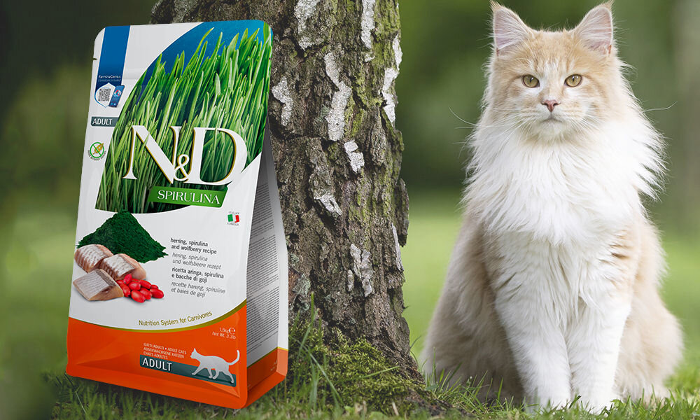 FARMINA N&D Spirulina to pełnoporcjowa karma dla kotów dorosłych. To karma wzbogacona o spirulinę, która dostarcza przeciwutleniaczy, witaminy i minerały pozytywnie wpływające na zdrowie kota. Szczególnie polecana jest dla kotów wrażliwych na gluten i zboża oraz dla tych, które mają problemy skórne i trawienne. Ponieważ do jej produkcji używane są jedynie naturalne składniki, wygląd zewnętrzny karmy, czyli jej zapach, wilgotność i kolor krokietów, może się różnić pomiędzy partiami. Wynika to stąd, że ten sam rodzaj mięsa może mieć różne odcienie, co przekłada się na kolor karmy.
