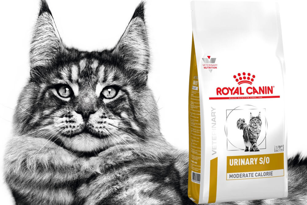 ROYAL CANIN® Urinary S/O Moderate Calorie to pełnoporcjowa karma dietetyczna dla dorosłych kotów mająca na celu rozpuszczanie i zapobieganie powstawaniu kamieni struwiowych. W jej składzie znalazły się substancje zakwaszające i rozcieńczające mocz, dzięki czemu utrudnione jest nie tylko powstawanie kamieni struwitowych, ale też oksalatowych. Wysoka zawartość białka i obniżona kaloryczność ułatwia kontrolowanie masy ciała, jednocześnie chroniąc masę mięśniową.