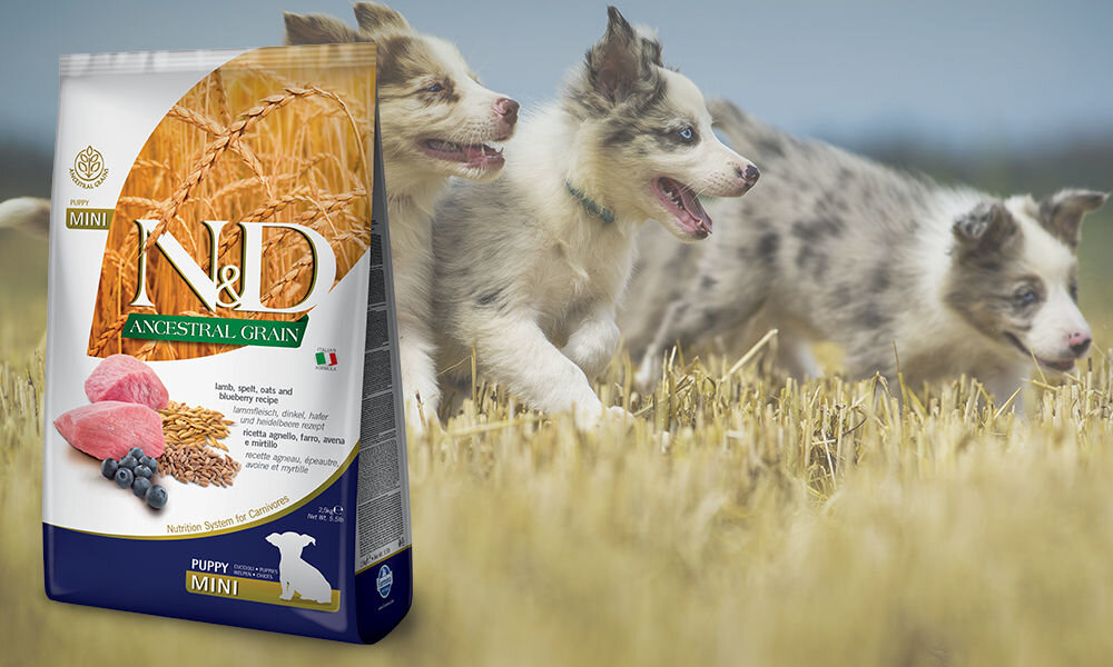 FARMINA Ancestral Grain Puppy Mini to pełnoporcjowa karma dla szczeniąt do 12 miesięcy oraz ciężarnych i karmiących suczek. Karma ma aż 90% białka zwierzęcego i niski indeks glikemiczny, dzięki czemu energia z niej uwalnia się stopniowo w ciągu dnia. Ponieważ do jej produkcji używane są jedynie naturalne składniki wygląd zewnętrzny karmy, czyli jej zapach, wilgotność i kolor krokietów, może się różnić pomiędzy partiami. Wynika to stąd, że ten sam rodzaj mięsa może mieć różne odcienie, co przekłada się na kolor karmy.