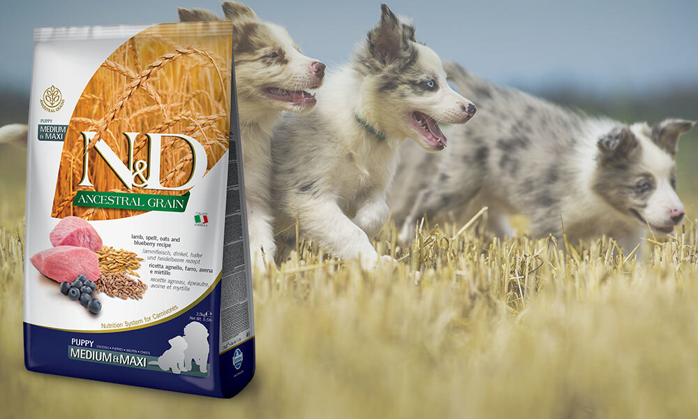 Karma dla psa FARMINA N&D Ancestral Grain Puppy Medium & Maxi Jagnięcina z orkiszem z owsem i borówką amerykańską 12 kg