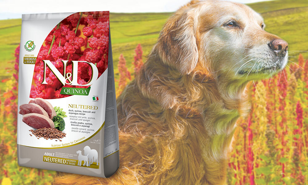 FARMINA N&D Quinoa Skin & Coat to pełnoporcjowa karma dla wszystkich ras psów. To karma bezzbożowa wyprodukowana z wysokiej jakości składników, w których zawartość białka pochodzenia zwierzęcego to aż 91%, która zalecana dla dorosłych psów kastrowanych. Ponieważ do jej produkcji używane są jedynie naturalne składniki wygląd zewnętrzny karmy, czyli jej zapach, wilgotność i kolor krokietów, może się różnić pomiędzy partiami. Wynika to stąd, że ten sam rodzaj mięsa może mieć różne odcienie, co przekłada się na kolor karmy.