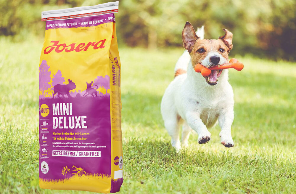 JOSERA Mini Deluxe to bezzbożowa karma dla dorosłych psów małych ras, a wielkość krokietów dostosowano specjalnie dla nich. W składzie karmy znalazły się wysokowartościowe białka, wspierające budowę mięśni i zapobiegające otłuszczaniu się ich oraz aminokwasy, które są jednymz z podstawowych składników budulcowych. Dodatkowo karma ogranicza wzrost stężenia wapnia w ślinie, co wpływa na redukcję kamienia nazębnego, a zawartość ziół i owoców uatrakcyjnia jej smak i wzbogaca recepturę. Co istotne, marka JOSERA dba o ochronę środowiska i wdraża oszczędną i neutralną dla klimatu metodę produkcyjną.