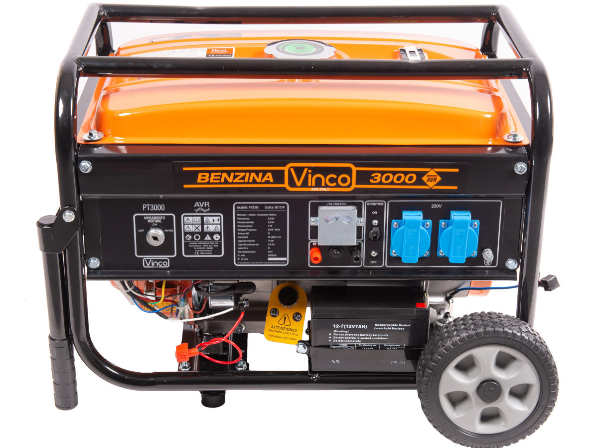 Agregat VINCO pracuje na silniku czterosuwowym o mocy ciągłej wynoszącej 2500 W i napięciu 230 V. Jego wykonanie z materiałów wysokiej jakości pozwoli zasilić najpotrzebniejsze sprzęty, a dzięki pojemności silnika wynoszącej 200 cm³ i 15 l zbiornikowi paliwa pozwoli na funkcjonowanie przez 12 h przy 50% mocy.
