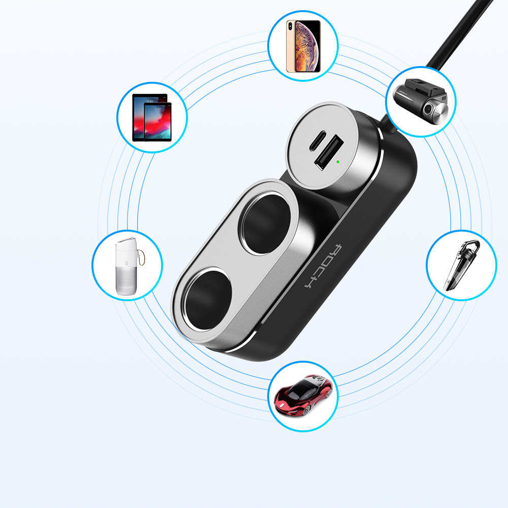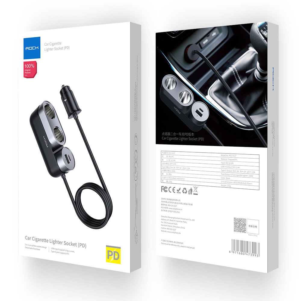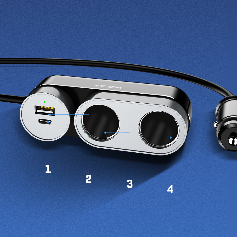 Rozdzielacz gniazda zapalniczki ROCK wyposażony został w 2 gniazda zapalniczki oraz ładowarkę posiadającą port USB-A, USB-C który wspiera najnowszą technologię POWER DELIVERY, technologia ta jest wykorzystywana między innymi przez firmę Apple do ładowania urządzeń typu macbook oraz najnowszych modeli iPhone, pozwala ona ładować urządzenia z mocą nawet do 100W. Dzięki tej technologii naładujesz swoje urządzenie znacznie znacznie szybciej niż w przypadku standardowej ładowarki. Urządzenie posiada system ochrony zapewniający stabilną i bezpieczną pracę eliminując ryzyko uszkodzenia ładowanego urządzenia. Łączna moc urządzenie to 5,4A.