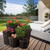 Rośliny umieszczone w plecionej doniczce prezentują się olśniewająco, niezależnie od tego, czy umieścimy ją na balkonie, tarasie czy w ogrodzie. Pleciona doniczka wykonana z tworzywa sztucznego, które doskonale naśladuje rattan, to idealny dodatek dekoracyjny dla różnorodnych gatunków kwiatów, który jednocześnie pełni rolę osłonki. W połączeniu z innymi doniczkami o różnych rozmiarach, stworzą piękne kompozycje, które nadadzą wyjątkowego charakteru każdemu pomieszczeniu lub otoczeniu.