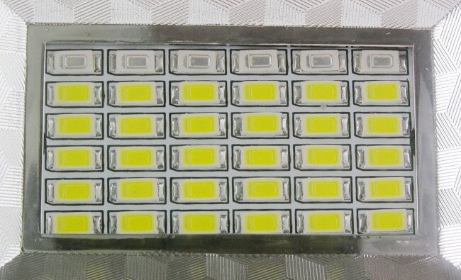 - Wyposażony w 30 diod LED białych, 3 diody LED czerwone oraz 3 diody LED niebieskie