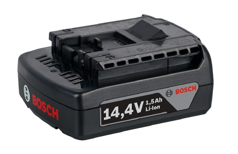 Akumulator firmy BOSCH o napięciu 14,4 V i pojemności 1,5 Ah. System Bosch Flexible Power - jeden akumulator do wszystkich narzędzi danej klasy napięcia. Wyjątkowa wytrzymałość: urządzenie zachowuje pełną sprawność i funkcjonalność nawet po upadku z wysokości 3 metrów na beton. Brak samorozładowania, brak efektu pamięci i wyższa gęstość energii dzięki technologii litowo-jonowej.