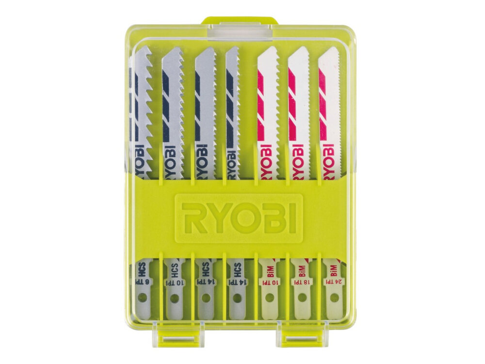 RYOBI RAK10JSB to zestaw 10 brzeszczotów przeznaczonych do wyrzynarek, które wykorzystywane są przy obróbce drewna, metalu i tworzyw sztucznych. Produkt obejmuje cały szereg różnych ostrzy (6-24 TPI), które umożliwiają wykończenie obrabianego materiału zgodnie z danym zastosowaniem.