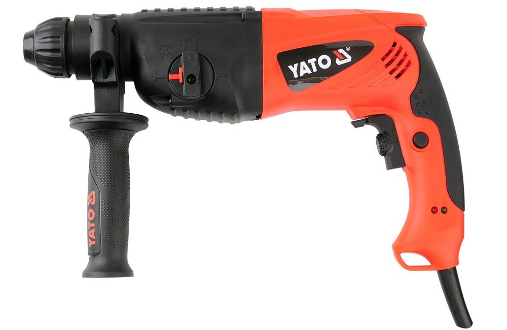 Uniwersalna młotowiertarka YATO YT-82120 z udarem elektropneumatycznym SDS PLUS o mocy 850 W. Posiada sprzęgło wykonane z wysoko wytrzymałej stali, zapewniające doskonałe zabezpieczenie przed przeciążeniem oraz bezpieczeństwo operatora podczas zakleszczenia wiertła (np. na prętach zbrojeniowych przy wierceniu w żelbecie). Maszyna zapewnia częstotliwość udaru 4900 (min-1) oraz energię udaru 3 J. Urządzenie posiada 4-funkcyjny przełącznik trybu pracy.