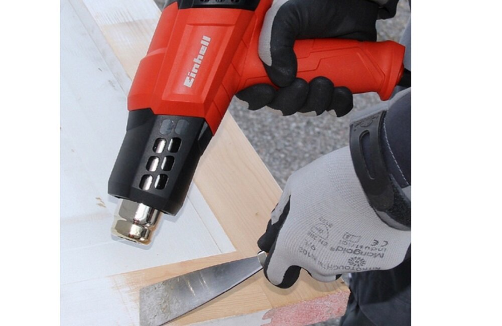 Opalarka EINHELL TE-HA 2000 E wyróżnia się lekką, kompaktową konstrukcją i komfortową strefą chwytową, zapewniając łatwą i ergonomiczną pracę. Wyróżnia się niesamowicie lekką wagą. Nawet przy dłuższym użytkowaniu sprzętu nie odczujesz dyskomfortu podczas pracy. Przeznaczona do usuwania starego lakieru i farby, montażu plastikowych rurek i wielu innych. Możliwość regulacji temperatury z 9 ustawieniami za pomocą dużego pokrętła oraz kontroli prędkości powietrza za pomocą 3 ustawień.