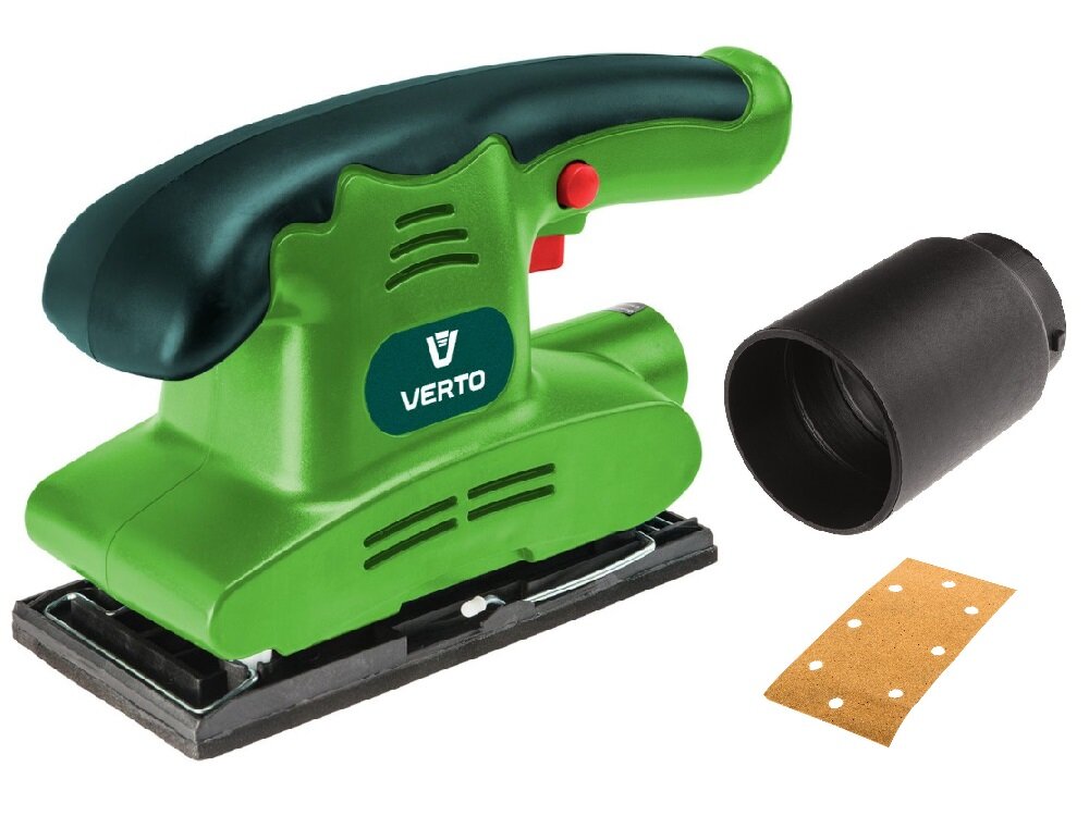 Szlifierka oscylacyjna VERTO 51G325 ma za zadanie ścierać różnego rodzaju materiały z drewnianych powierzchni. Włącznik szlifierki posiada blokadę pracy ciągłej, co umożliwia szlifowanie bez ciągłego trzymania dłoni na spuście włącznika. Dodatkowo w zestawie znajduje się również system odsysania pyłu.
