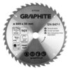 Tarcza do pilarki widiowa GRAPHITE o średnicy zewnętrznej 300 mm i otworze montażowym 30 mm przeznaczona jest do szybkiego cięcia drewna oraz materiałów drewnopochodnych, takich jak sklejka, płyta wiórowa czy MDF. Wyposażona została w 40 ostrych zębów o kącie 15°, które zapewniają czyste i precyzyjne cięcie. Szerokość rzazu wynosi 2,8 mm, a maksymalna prędkość obrotowa tarczy to 6 000 obr./min. Tarcza GRAPHITE jest zgodna z normą EN 847-1, co świadczy o jej bezpieczeństwie i jakości wykonania. W zestawie znajdują się trzy pierścienie redukcyjne (30/25,4 mm, 30/20 mm i 30/16 mm), które umożliwiają dopasowanie tarczy do większości popularnych modeli pilarek.