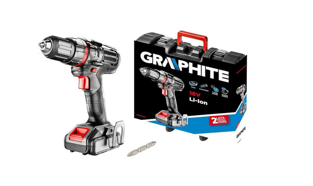 Poznaj profesjonalną wiertarko-wkrętarkę, marki GRAPHITE. Urządzenie zasilane jest wydajnym akumulatorem Li-Ion 18 V o pojemności 1.5 Ah. Wiertarko-wkrętarka, to wielozadaniowe elektronarzędzie akumulatorowe, z 2-biegową przekładnią planetarną, wykonaną z wysokiej jakości stali. Dodatkowo - urządzenie posiada wysoki komfort użytkowania oraz pełną swobodę manewrowania, dzięki lekkiej i poręcznej konstrukcji.