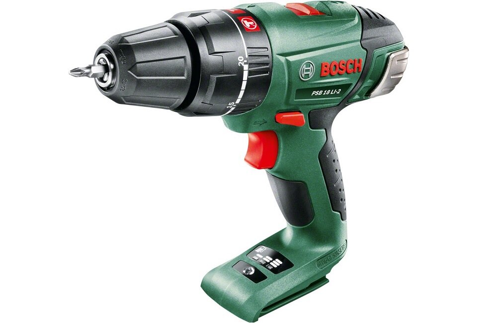- Wiertarko-wkrętarka udarowa BOSCH PSB 18 LI-2 akumulatorowa (bez akumulatora i ładowarki)