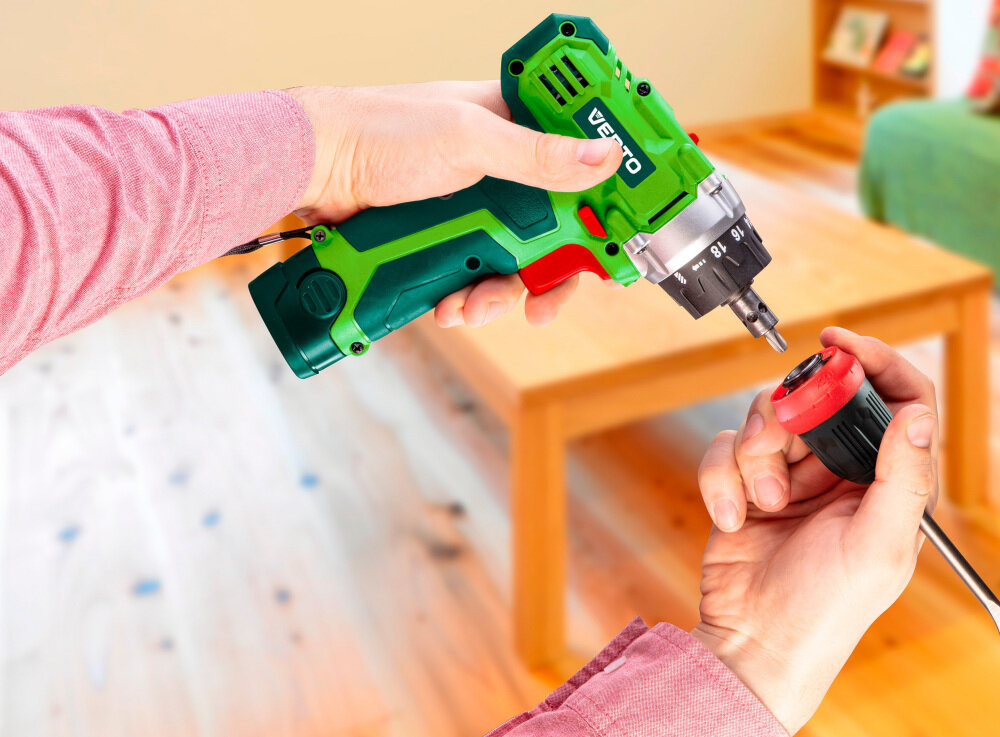 Atutem wiertarko-wkrętarki jest zdejmowany uchwyt wiertarski, który skraca narzędzie i umożliwia mocowanie odpowiedniego osprzętu bezpośrednio w gnieździe sześciokątnym 1/4 cala. Samozaciskowy uchwyt wiertarski w zakresie od 0,8 mm do 10 mm umożliwia wykonywanie różnych rodzajów prac. Dodatkowo 18-stopniowa regulacja momentu obrotowego pozwala dostosować siłę dokręcania, a także korzystać z funkcji wiercenia.