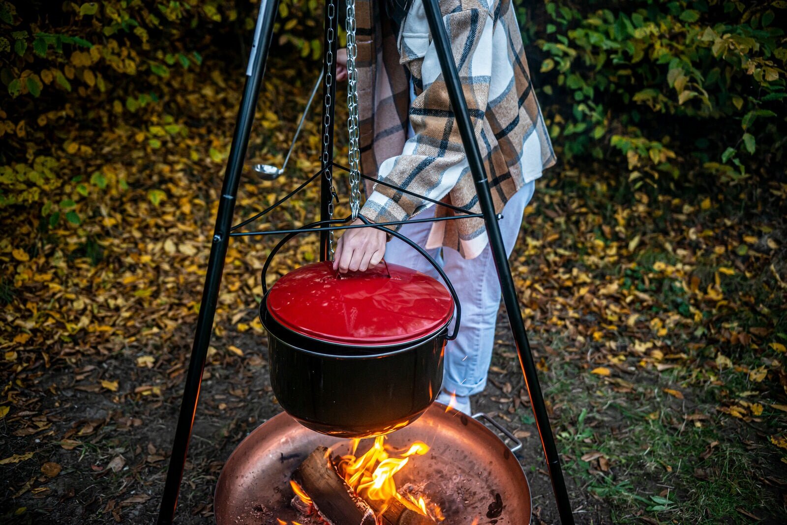 Kociołek węgierski ACTIVA 11110 do powieszenia na grillu wahadłowym. Jest to wyśmienity sposób na przyrządzanie posiłków na świeżym powietrzu, na biwakach, kempinagach. Przygotowanie gulaszu, pysznego bigosu czy wojskowej grochówki nad "żywym ogniem" nie nastręczy już żadnych kłopotów. Do zawieszenia na statywie grilla oraz do przenoszenia kociołka służy duży, wygodny uchwyt. Kociołek o pojemności 14 litrów wykonany jest z lakierowanej proszkowo stalowej blachy. Dołączona duża chochla wykonana jest ze stali nierdzewnej.