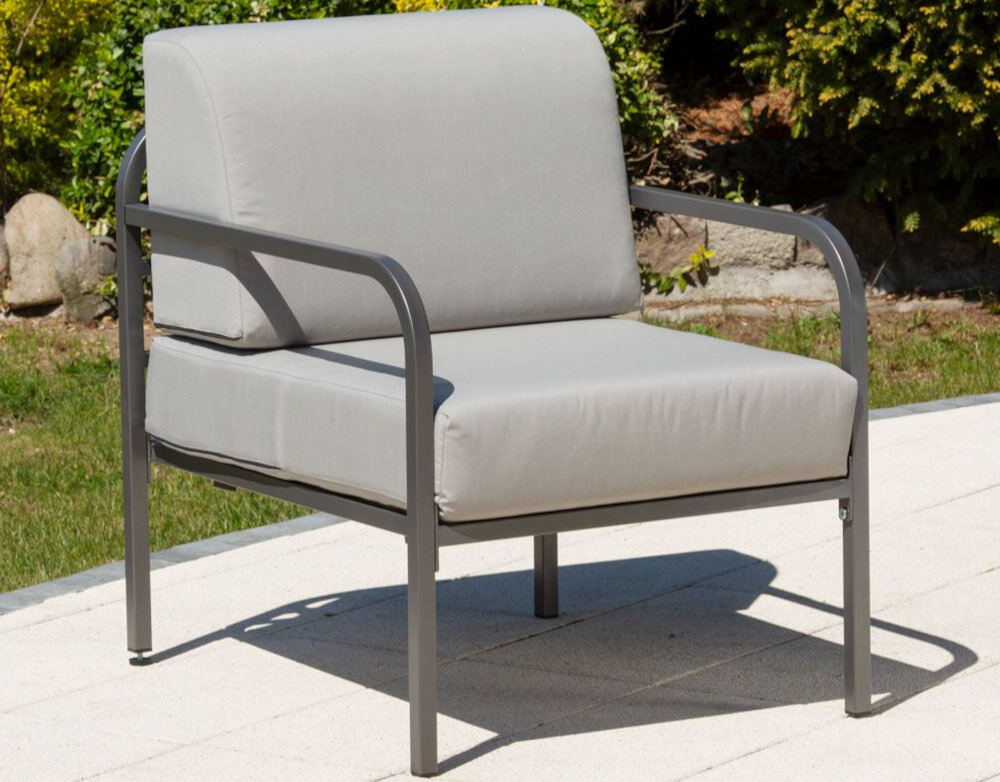 Fotel PATIO Agat D042-16DW ma solidną konstrukcją ze stali, która doskonale komponuje się zarówno na tarasie, jak i wewnątrz pomieszczeń. Wykonany za pomocą malowania proszkowego, gwarantuje wyjątkową odporność na czynniki zewnętrzne, takie jak promienie UV i wilgoć. Maksymalne obciążenie: 150 kg.