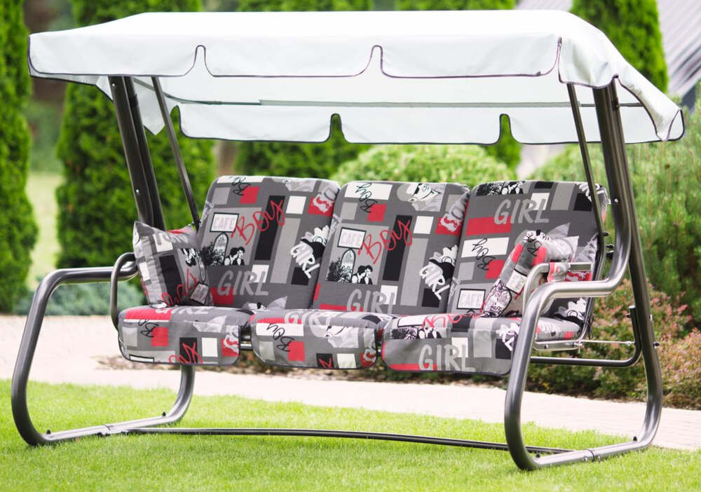 Huśtawka ogrodowa PATIO Rimini F004-06LB, 3 poduszki, 2 podłokietniki, daszek, dokumentacja.