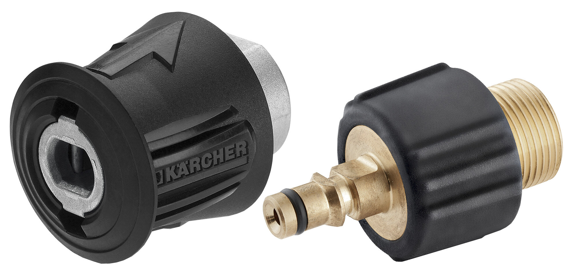 KARCHER stworzył adaptery służące do tego, byś mógł podłączyć węża ze śrubowym gwintem, do urządzenia z wysokim ciśnieniem, dzięki innowacji - Quick Connect. Adaptery wykonane są z mosiądzu oraz tworzywa sztucznego. Są łatwe w użyciu.