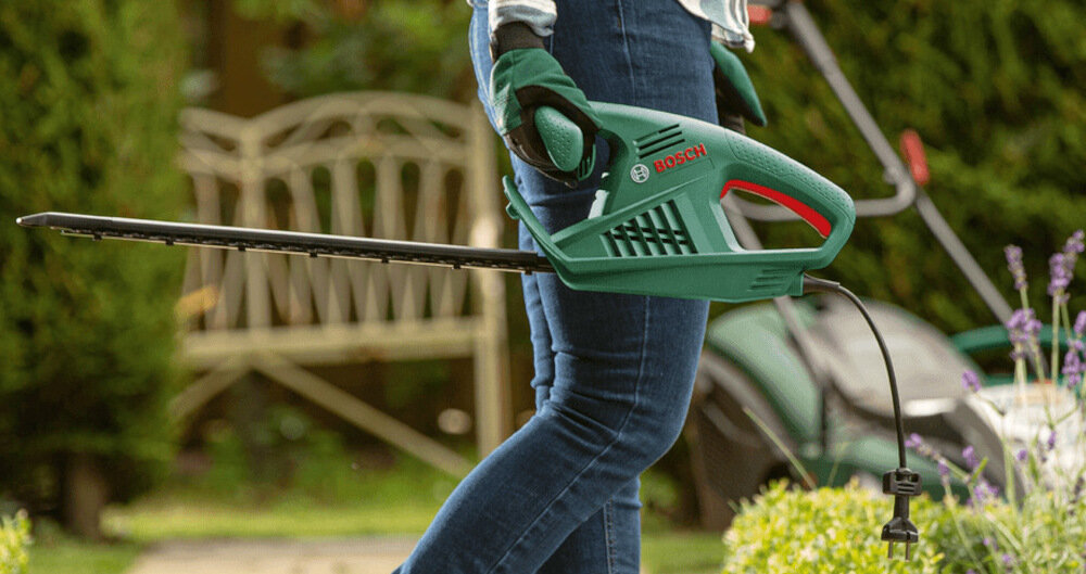 Nożyce BOSCH EasyHedgeCut 55-16 0600847C02 są również łatwe w obsłudze. Posiadają przycisk bezpieczeństwa, który zapobiega przypadkowemu uruchomieniu narzędzia. Dzięki temu, możesz pracować bez obaw o niechciane zdarzenia.