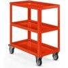 Wózek narzędziowy JAN NOWAK Hugo oferuje 3 pojemne półki o wysokości 32 cm, dzięki którym łatwo posegregujesz sprzęt. Każda półka ma ranty zabezpieczające przed wypadaniem drobnych elementów, co przyspiesza pracę w warsztacie. Stalowa konstrukcja umożliwia przechowywanie narzędzi w garażu, zakładzie wulkanizacyjnym, warsztacie samochodowym i pomieszczeniach produkcyjnych.