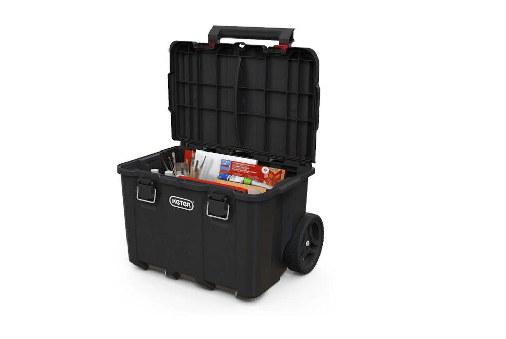 Skrzynka została zaprojektowana z dbałością o szczegóły i wygodę. Model zamykany jest za pomocą solidnych metalowych klamr. Ma też możliwość założenia kłódki, która zabezpieczy zawartość przed kradzieżą. Wygodny transport zestawu umożliwiają wytrzymałe 7-calowe kółka.