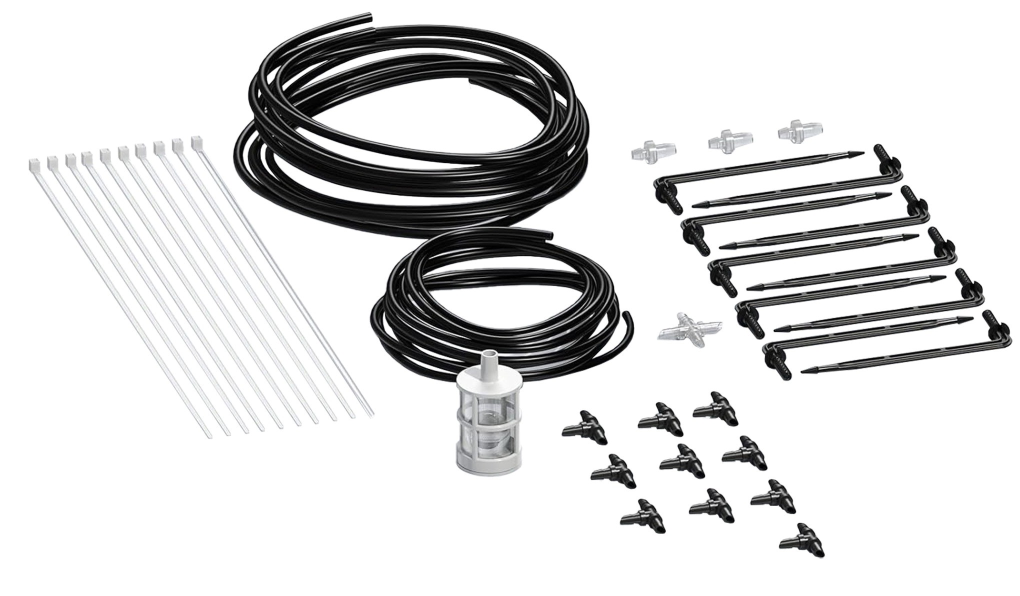 Zestaw akcesoriów marki RainPoint do systemu nawadniania umożliwia precyzyjne i efektywne podlewanie nawet większej liczby roślin. W jego skład wchodzą elastyczne przewody o różnych średnicach, kolce montażowe, emitery kroplujące, złączki typu T i krzyżowe oraz filtr chroniący przed zanieczyszczeniami. Dzięki tym elementom łatwo rozbudujesz system nawadniania, dopasowując go do układu rabat, donic i grządek w ogrodzie. To idealne rozwiązanie, gdy standardowy zestaw wystarcza na 10–15 roślin, a Ty chcesz podlewać większy obszar.