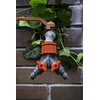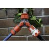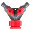 Rozdzielacz 2-drożny do kranu 1" lub 3/4", wykonany z polipropylenu i ABS. Rozdzielacz pozwala na podłączenie do ujęcia wody 2 końcówek węży za pomocą szybkozłączek przelotowych. Każde połączenie posiada regulację przepływu wody.