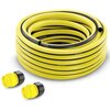 Wygodny zestaw przyłączeniowy zawiera dwa praktyczne, uniwersalne złącza, które są kompatybilne z trzema najpopularniejszymi średnicami węży i wszystkimi dostępnymi systemami szybkiego montażu. W zestawie znajduje się również 20-metrowy wąż jakości PrimoFlex, który idealnie sprawdzi się do podlewania małych i większych powierzchni w ogrodzie. Nieprzezroczysta warstwa środkowa zapobiega tworzeniu się glonów w 3-warstwowym, odpornym na załamania wężu ogrodowym, a tkane wzmocnienie wytrzymuje temperatury od 0 do +40 stopni. W połączeniu z odporną na warunki atmosferyczne warstwą zewnętrzną chroniącą przed promieniowaniem UV, PrimoFlex jest wyjątkowo trwały. Dzięki PrimoFlex przepływająca woda pozostaje nie tylko wolna od glonów, ale także całkowicie niezanieczyszczona. Wąż nie zawiera żadnych zmiękczaczy (ftalanów < 0,1 %) szkodliwych dla środowiska i zdrowia ludzkiego, ani metali ciężkich i lekkich (niezawierających kadmu, baru i ołowiu), dzięki czemu PrimoFlex® zyskał miano węża wysokiej jakości. Bez Aqua Stop, ale z odpornością na ciśnienie do 24 barów, idealnie nadaje się zarówno jako wąż zasilający do myjek ciśnieniowych Kärcher, jak i do podlewania ogrodu.