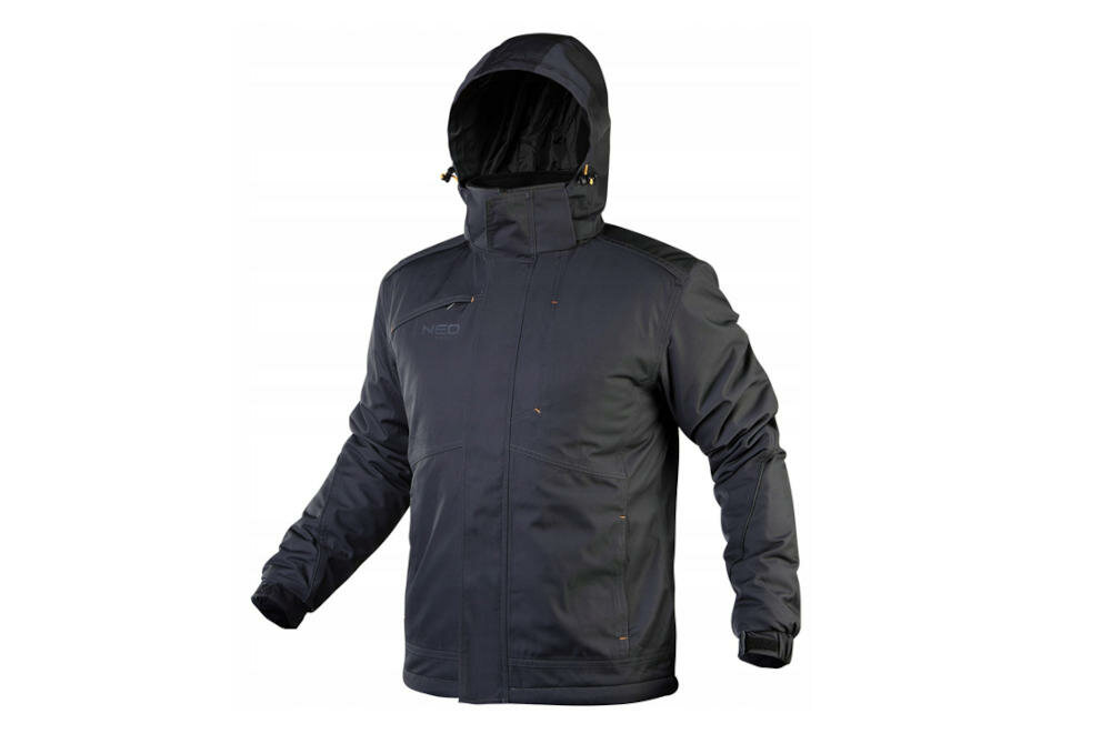 Zapewnij sobie ciepło podczas wykonywania różnych prac z kurtką roboczą NEO Dobby TX-81-575-L. Kurtka została wykonana z poliestru. Posiada powłokę membranową, która zapewnia wodoodporność oraz komfort termiczny, co jest ważne podczas mroźnych dni. Kurtka ma dwie wygodne kieszenie pod plisą - piersiową i barkową, obie zapinane na suwak oraz kieszenie boczne. Ma też ciepły kaptur, który można schować w stójce. Rękawy posiadają regulację obwodu i gumkę w mankiecie, a odblaskowa taśma zapewnia bezpieczeństwo. Produkt posiada certyfikat CE. Prezentowana kurtka to rozmiar L.