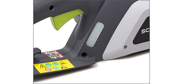 Praktyczny uchwyt i hamulec bezpieczeństwa Dzięki elektrycznemu silnikowi podczas pracy wibracje są minimalne. Uchwyt pozwoli sprawnie obsługiwać urządzenie, a hamulec zapewni bezpieczeństwo. Szerokość uchwytu to 12 cm. Produkt otrzymał pozytywne wyniki w profesjonalnym teście TUV zgodnym z dyrektywą 2006/42/EC.