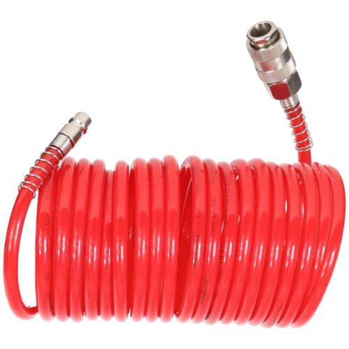 Kompaktowa konstrukcja spiralna oszczędza miejsce, a fabrycznie zamontowane szybkozłącza (żeńska uniwersalna i męska typu Euro) gwarantują łatwość i szybkość podłączenia. Wąż jest przystosowany do pracy pod ciśnieniem do 10 barów, co czyni go idealnym wyborem zarówno dla profesjonalnych warsztatów, jak i zakładów przemysłowych.